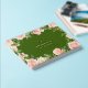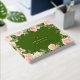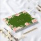 A beautiful gold foil wedding guestbook in leaf green with a pink rose border.