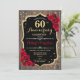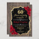 60th Wedding Anniversary Invitation. Rustic elegant invite card dark brown wood pattern, with faux glitter gold and red roses. Printed invitations or digital template. Perfect for a stylish 60 years of marriage celebration.