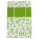 This over-the-hill numeric design is a green and white random number pattern with a green milestone number 60 repeated in varied sizes and angles over a white background. There is a printed banner and a gift tag with text templates so you can easily personalize any or all of the text.