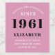 A personalized classic label design for that birthday celebration for a special woman born in 1961 and turning 60. Add the name to this vintage retro style pink, white and black design for a custom 60th birthday gift. Easily edit the name and year with the template provided. A wonderful custom pink birthday gift. More gifts and party supplies for that 60th party celebration available in the store.