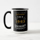 For those born in 1963 and celebrating their birthday we have the ideal birthday coffee mug. The black background with a white and gold vintage typography design design is simple and yet elegant with a retro feel. Easily customize the text of this birthday gift using the template provided. More gifts and party supplies available with the "Legendary" design in the store.