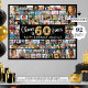 Create a 60th birthday photo memory display poster print utilizing this easy-to-upload photo collage template with 92 pictures in various sizes to accommodate pictures of her or him through the years for a fun birthday sign or party decoration and commemorative keepsake. The design features the title CHEERS TO 50 YEARS with gold foil balloon numbers and your custom text (the sample says HAPPY BIRTHDAY NAME) in your choice of text of font styles and colours as well as background colour (shown in black). OPTIONS: The sample is shown in a 36x29" size on Value Paper (Matte); other standard and custom print sizes, paper quality, Instant Digital Download file for printing locally or transferring the design to a foam board, banner, canvas or other product options are available on the ordering page. RESIZING TIP: Choose Custom Size for even borders by changing the height and width proportionately AFTER clicking the UNLOCK icon (looks like a chain link). ASSISTANCE: For help with design modification or personalization, colour change, resizing or transferring the design, contact the designer BEFORE ORDERING via the Zazzle Chat MESSAGE tab or email makeitaboutyoustore@gmail.com.