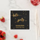 Elegant and modern for a 60th birthday party. Black backdrop and faux gold text written with a trendy hand-lettered style script: hello sixty. With golden dots as decor. Templates for a name and date.