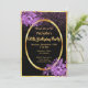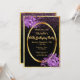 A feminine and chic invitation card for a 60th birthday party. Glamourous with elegant and classic black backdrop and pink and purple confetti rain. With a faux gold frame, and ultra violet and purple coloured watercolored flowers. Template for name and party details.