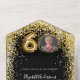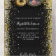 A black background, decorated with golden confetti and a large number 60 in faux gold. Personalize and add a photo, name, party details, RSVP date, return address and name.
