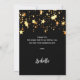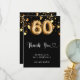 A thank you card for a 60th birthday. A black background colour. With faux gold stars. On front: number 60 written with a balloon style font. Thank You, your text, title and a date.