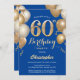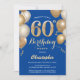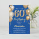 60th Birthday Blue and Gold Balloons Confetti Invitation