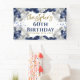 A gorgeous navy and silver balloon 60th birthday party banner. This fabulous design is the perfect way to congratulate someone on their sixtieth birthday (or any age!). Personalize with our own custom name. Blue and gold coloured typography and gorgeous navy blue and silver balloons.
