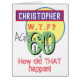Celebrate a birthday with a personalized card showing name and birthday age. Funny message says "How did THAT happen!". Add your own personal message inside too. 60 years old.