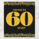 A 60th birthday celebration featuring a chunky retro modern 60 in a gold glitter pattern with speckled gold confetti border over a black background.