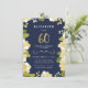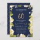 This elegant and classy sixtieth birthday invitation features an illustrated floral border and the number "60" in gold. The background is a navy blue colour, but can be customized to any colour you choose. The back of the invite includes a gold quatrefoil pattern with a matching navy background that can also be swapped out. The text is customizable for your special milestone birthday celebration event.