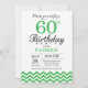 60th Birthday Invitation with Green Chevron. Black and White. Adult Birthday. Man or Women Bday Invite. For further customization, please click the "Customize it" button and use our design tool to modify this template.