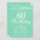 60th Birthday Invitation with String Lights. Mint Green Background. Men or Women Birthday. 13th 15th 16th 18th 20th 21st 30th 40th 50th 60th 70th 80th 90th 100th, Any age. For further customization, please click the "Customize it" button and use our design tool to modify this template.