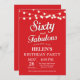 60th Birthday Invitation with String Lights Red Background. Woman Birthday Party. Sixty and Fabulous. Any age. For further customization, please click the "Customize it" button and use our design tool to modify this template.