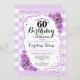 Elegant white lavender design with faux glitter. Silver and white stripes with purple lilac roses. Perfect for an elegant sixtieth birthday party.