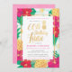 Pink & gold 60th birthday luau invitations with fun, pretty tropical flowers and pineapples, with gold accents. Perfect for a luau themed sixtieth birthday bash!
