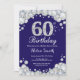 60th Birthday Navy Blue and Silver Diamond Invitation