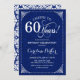 Elegant vintage navy blue and white design with damask pattern. Features script font. Cheers to 60 years! Can be personalized into any age! Message me if you need further customization.