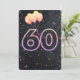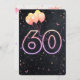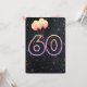 Glowing neon sign and confetti on black background with balloon bouquet for 60th birthday party invite.