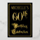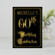 The front of this elegant, luxurious, foil sixtieth birthday celebration/party invitation design features the message “60th Birthday Celebration” in ornate script-style text. It also has a custom name. The background of the front is coloured black by default (although it can be customized to a different colour). The back features personalized details about the event, such as the date, time, location, and any other information that may be relevant. Ornate, fancy, personalized invitations like these might be used to invite guests to a birthday party being held to honour somebody’s sixtieth birthday. [~Z0000589]