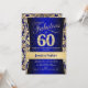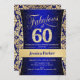 60th Birthday Party Invitation in royal blue and gold. Elegant invite card with faux glitter gold and diamonds. Features damask pattern and script font. Fabulous at sixty! Classic design perfect for an stylish party. Perfect for a glam birthday celebration. Printed Zazzle invitations or instant download digital printable template.
