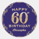 60th Birthday Party Navy Blue and Gold Glitter Classic Round Sticker
