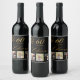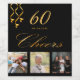 A bottle label for a glamourous 60th birthday party. Personalize and add 3 of your own photos, age 60 and a date.  Date of birth or the date of the party.  Golden coloured letters. The word: Cheers, in faux gold written with a trendy hand lettered style script.  Elegant, classic chic black background colour, decorated with faux gold party streamers.