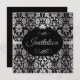 60th Birthday Party | Silver & Black Damask Invitation