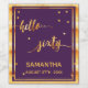 Elegant and modern for a 60th birthday party. Purple backdrop and faux gold text written with a trendy hand-lettered style script: hello sixty with golden dots as decor. Templates for name and date, golden letters. You can change the background colour to match your theme. Click customize and then "select a background colour" on your right.