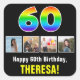 60th Birthday: Rainbow “60”; Custom Photos & Name Square Sticker