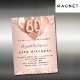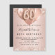 For an elegant 60th birthday. A rose gold background. Decorated with rose gold, pink faux glitter, sparkles and balloons. Personalize and add a name, and party details. The name is written with a hand lettered style script, number 60 with balloon style fonts.