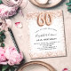 For an elegant 60th birthday. A white background. Decorated with rose gold, pink faux glitter, sparkles. Personalize and add a name, and party details. The name is written with a hand lettered style script, number 60 with balloon style fonts.