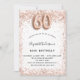 For an elegant 60th birthday. A white background. Decorated with rose gold, pink faux glitter, sparkles. Personalize and add a name, and party details. The name is written with a hand lettered style script, number 60 with balloon style fonts.