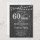 Rustic simple design with dark gray wood pattern and fairy string lights. Features script font. Cheers to 60 years! Can be personalized into any age! Message me if you need further customization.