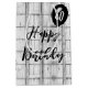 A symmetrical pattern features vertical and horizontal wooden panels with a worn, rustic appearance, showcasing a faded white finish with black balloon for a 60th birthday.