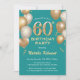 60th Birthday Teal and Gold Glitter Balloons Invitation