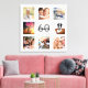 A unique 60th birthday gift or keepsake, celebrating her life with a collage of 8 of your photos. Add images of her family, friends, pets, hobbies or dream travel destination. Personalize and add a name, age 60 and a date. Gray and black colored letters. A chic white background. This canvas is also available in our store with black or rose gold colored background.