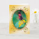 A beautiful red and black butterfly resting on a yellow flower. A lovely card for a woman or girl.