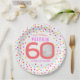 Bright colourful confetti random dots birthday 60th surprise party paper plates. In bright living coral, hot pink, golden yellow and aqua blue green. Add your own birthday girl's photo in the centre of the 0 in 60 and customize with your own sixtieth birthday date, time and party details. Other matching items and milestone birthday years available. Original design by www.mylittleeden.com on zazzle.