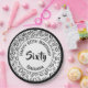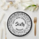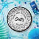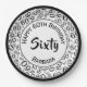 This over-the-hill design has a black and white random number pattern with the black milestone number 60 'repeated in varied sizes and angles for an all-over print. There is a white circle in the centre for your text and black and white rings around the rim.