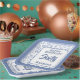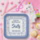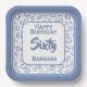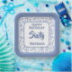 This over-the-hill design has a blue and white random number pattern with milestone number 60 repeated in varied sizes and angles. There is a white rounded square in the centre for your text and blue and white around the rim.