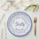 This over-the-hill design has a blue and white random number pattern with the blue milestone number 60 'repeated in varied sizes and angles for an all-over print. There is a white circle in the centre for your text and blue and white rings around the rim.