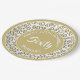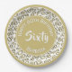 This over-the-hill design has a gold and white random number pattern with the gold milestone number 60 'repeated in varied sizes and angles for an all-over print. There is a gold circle in the centre for your text and gold and white rings around the rim.