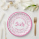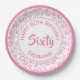 This over-the-hill design has a pink and white random number pattern with the pink milestone number 60 'repeated in varied sizes and angles for an all-over print. There is a white circle in the centre for your text and pink and white rings around the rim.
