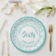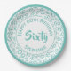 This over-the-hill design has a teal and white random number pattern with the teal milestone number 60 'repeated in varied sizes and angles for an all-over print.  There is a white circle in the centre for your text and teal and white rings around the rim.