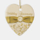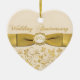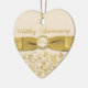 This elegant ceramic heart shaped ivory and gold floral 60th wedding anniversary Christmas ornament has a gold PRINTED ribbon and bow with an ivory and gold PRINTED medallion on it. It would make a lovely keepsake for the couple celebrating 60 years together. The text is customizable. If you require a different anniversary number, or if you need help customizing this ornament, please email niteowlstudio@gmail.com.