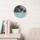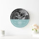 Simple outline heart stone effect line art graphics blue-grey green and white add your own photo 60th Diamond Wedding Anniversary clock. Customize with your own 55th-anniversary couple's name, year of their wedding, and year of anniversary, plus add a landscape photograph of your anniversary couple. The fifty-fifth wedding anniversary is associated with the precious gemstone emerald and the heart symbolizes love. Graphics and design by Sarah Trett for www.mylittleeden.com and www.mylittleedenweddings.com on Zazzle.