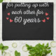 'Diamond? We deserve Platinum for putting up with each other for 60 Years' quote for a couple who got married 60 years ago or a couple renewing wedding vows on their diamond anniversary.