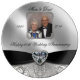 A Digitalbcon Images Design featuring a Black Satin Ribbon and Platinum Silver Flourish Frame theme with a variety of custom images, shapes, patterns, styles and fonts in this one-of-a-kind "Diamond Wedding Anniversary" Photo Porcelain Plate. This elegant and attractive design comes with customizable Photo image and text lettering on the front and is sure to create years of enjoyment in viewing all your memorable photos on your special Diamond Wedding Anniversary. THIS DESIGN IS ALSO AVAILABLE IN COMPLEMENTARY PRODUCTS SUCH AS PHOTO INVITATIONS, THANK YOU NOTES, BINDERS, ORNAMENTS, BUTTONS AND STICKERS, TO COMPLETE YOUR SPECIAL EVENT.
