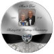 A Digitalbcon Images Design featuring a Black Satin Ribbon and Platinum Silver Flourish Frame theme with a variety of custom images, shapes, patterns, styles and fonts in this one-of-a-kind "Diamond Wedding Anniversary" Photo Porcelain Plate. This elegant and attractive design comes with customizable Photo image and text lettering on the front and is sure to create years of enjoyment in viewing all your memorable photos on your special Diamond Wedding Anniversary. THIS DESIGN IS ALSO AVAILABLE IN COMPLEMENTARY PRODUCTS SUCH AS PHOTO INVITATIONS, THANK YOU NOTES, BINDERS, ORNAMENTS, BUTTONS AND STICKERS, TO COMPLETE YOUR SPECIAL EVENT.